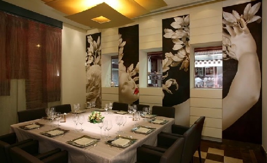 Carpaccio di astice, maionese di bianco di pomodoro, riccioli croccanti di puntarelle. Mazzancolle in crosta di semi di sesamo, pane nero al peperoncino e pomodorini al lime. Costolette di agnello in crosta di melanzane e mandorle e salsa ai grani di senape. Pappardelle alla polpa di granceola, fiori di zucchine e barba dei frati. Filetto di puledro i casseruola, emulsione di zenzero e limone e frittelle di farina di carruba. Carpaccio di pezzonia al pesto di ortaggi. Ostriche in gelatina con spuma di corallo di cappesante. Poi, a rotazione, ripropongo tutti i piatti della tradizione milanese come i risotti.