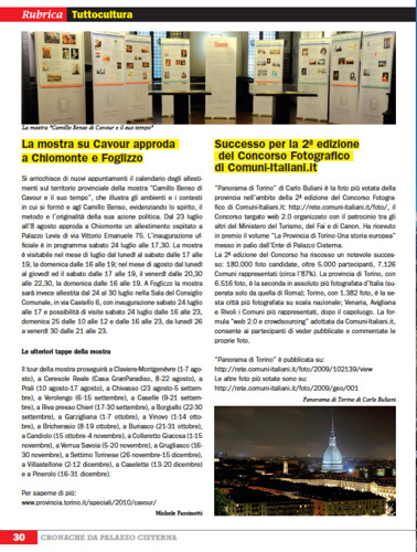 Marcello Di Sarno ha scritto:Sul numero 21 del 23 luglio di "Cronache da Palazzo Cisterna", settimanale ufficiale della Provincia di Torino, è stato pubblicato, a pagina 29, un articolo sull'esito del Concorso, con particolare riferimento alla foto più votata della provincia torinese, il cui autore è Carlo Buliani.