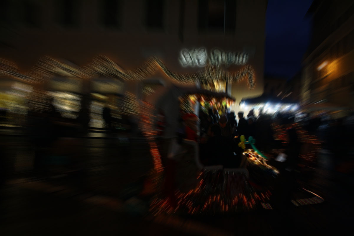 se davanti alla chiesa ci fossero delle decorazioni, tipo un albero di natale, si potrebbe inquadrare lasciando l'albero al centro del fotogramma, in modo tale che risente in misura minore dell'effetto zoom.se poi ci fossero altre decorazioni, nelle parti nn centrali del fotogramma, allora su queste l'effetto zoom sarebbe + evidenti e si possono ottenere delle scie luminose.