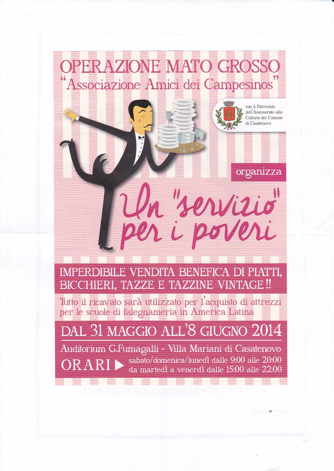 Dal 31 maggio all'8 giugno 2014 vendita benefica di piatti, bicchieri, tazze e tazzine vintage per sostenere le scuole di falegnameria in America Latina.