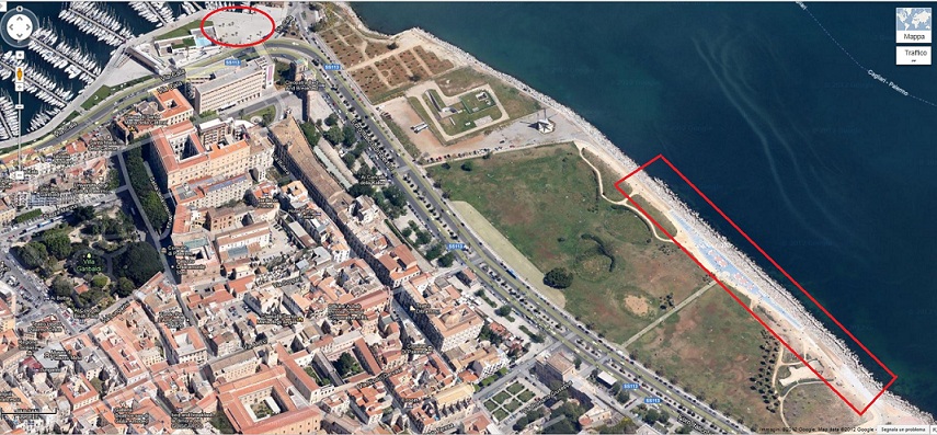 Lasciando da parte il foro italico che avendo una sua denominazione diversa da piazza non credo che andrò a candidare, il dubbio mi resta per l’altro piazzale. La via su cui prospetta è via Cala, ma questo spazio di suo non credo abbia un nome, considerando anche il fatto che i lavori di riqualificazione sono stati ultimanti da poco. Non fa parte della strada (ha una sua pavimentazione ed è “protetto” da dissuasori a sfera) e non fa parte del porticciolo (è separato dalla banchina da un cambio di quota), penso possa essere assimilabile a piazza, anche se i casi di luoghi assimilabili a piazza sono purtroppo, di valutazione soggettiva.