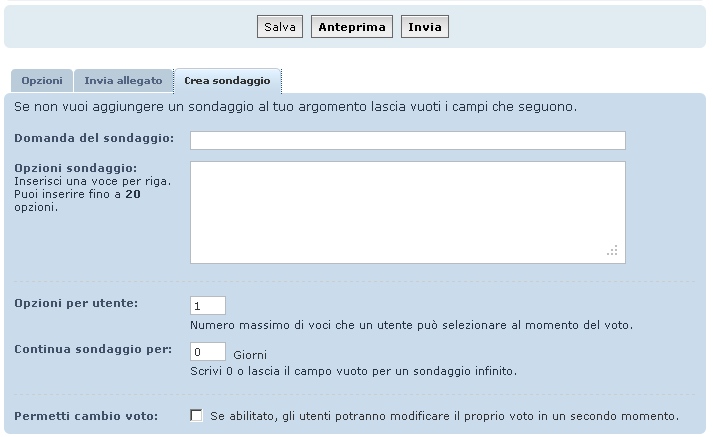 per aprire un sondaggio nelle sezioni del forum dove siete abilitati a farlo