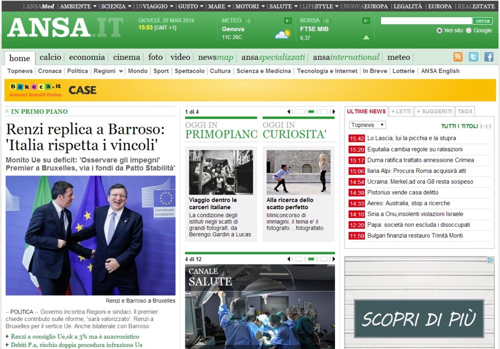 Marcello Di Sarno ha scritto:Vi comunico che con oltre 313mila visualizzazioni l'articolo sul contest "Fotografi" è il più letto della settimana scorsa (tuttora primo) e settimo nelle notizie del mese del portale http://www.ansa.it.
