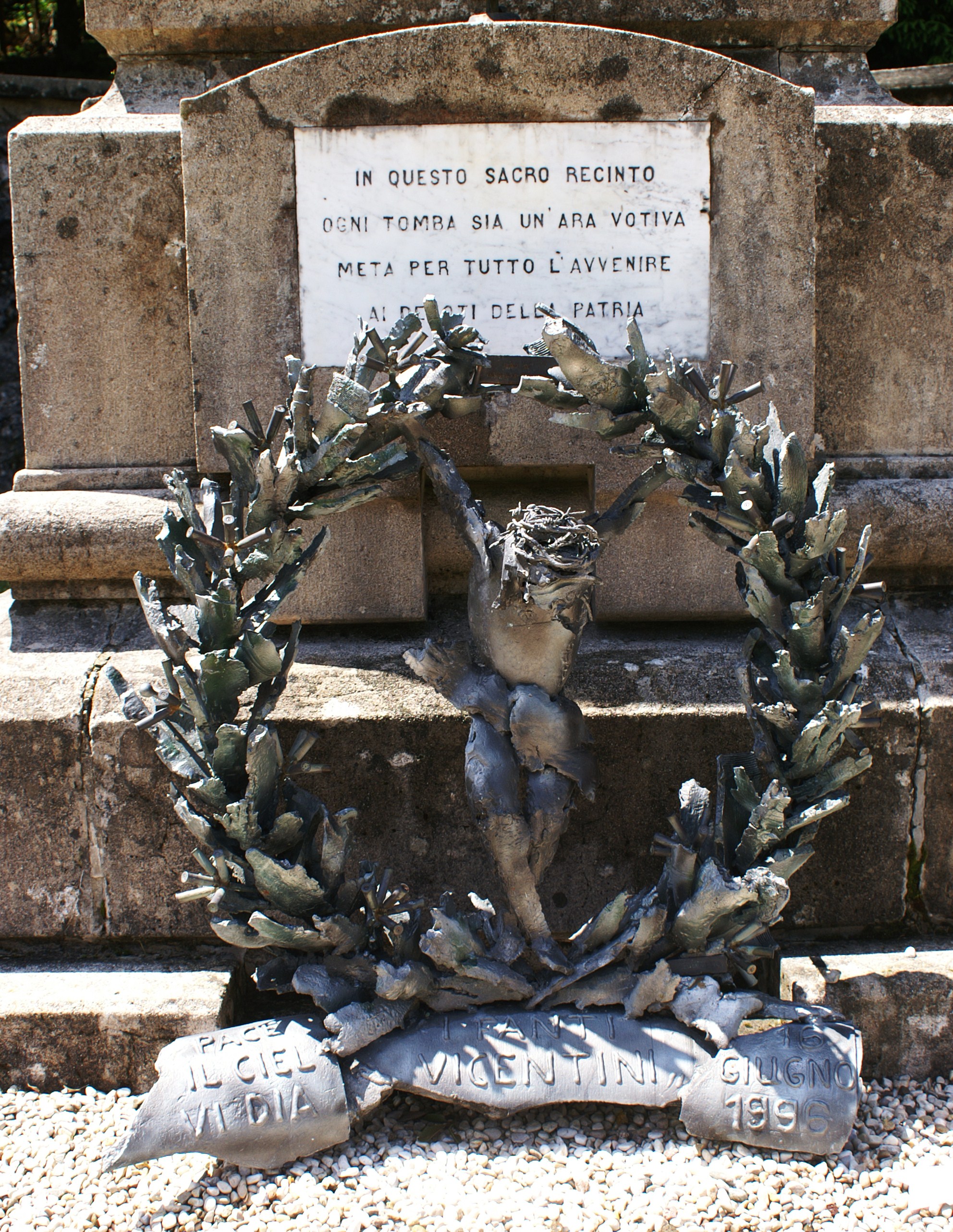 La scultura è realizzata interamente con schegge di bombe e granate (originali del 15/18)