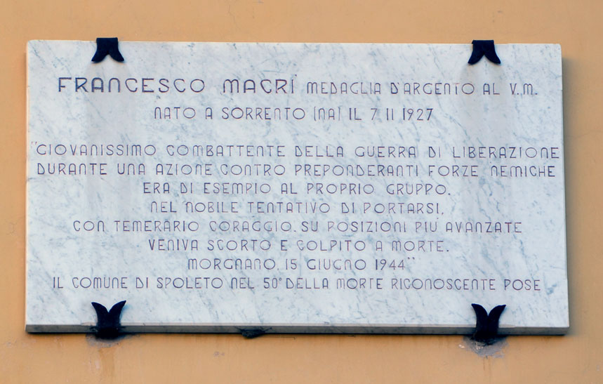 File:Spoleto - Piazza della Libertà - Francesco Macrì medaglia d'argento al v.m..jpg