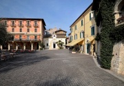 Sotto il portico dell'albergo Gardesana (a sinistra della foto) ancora oggi possiamo vedere un cippo marmoreo che il padre eresse a ricordo dell'Umanista Gardesano nel 1478, anno della sua scomparsa. Le iscrizioni sono state dettate dal padre di Calderini (fronte) e dal Poliziano (retro), quando questi soggiornò a Torri, opsite della famiglia Calderini, per prendere attenta visione degli scritti e dei documenti di Domizio